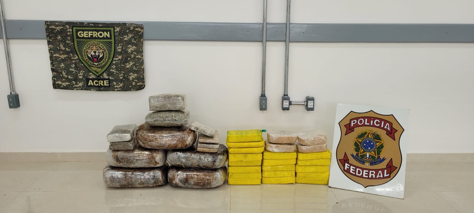 Por volta das 12 horas, a Polícia Federal, em parceria com o GEFRON, apreendeu aproximadamente 39 kgs de entorpecentes, na BR 317, saída de Epitaciolândia para Rio Branco.