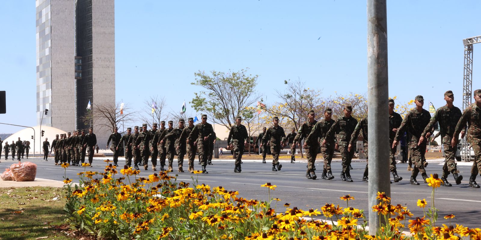 O desfile cívico-militar de 7 de setembro, neste sábado (7), na Esplanada dos Ministérios, em Brasília, terá o lema “Democracia e Independência – É o Brasil no rumo certo”.