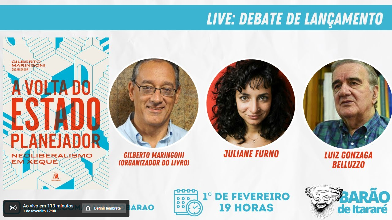 O Barão de Itararé promove, na terça-feira (1/2), debate de lançamento para o livro “A volta do Estado planejador: neoliberalismo em xeque” (Ed. Contracorrente). Organizador da publicação, o jornalista e professor da Universidade Federal do ABC (UFABC) Gilberto Maringoni contará com a companhia dos economistas Luiz Gonzaga Belluzzo (autor do prefácio do livro) e Juliane Furno (que assina um dos artigos presentes na obra) para um bate-papo sobre tema crucial para a decisão que o povo brasileiro tomará em 2022.