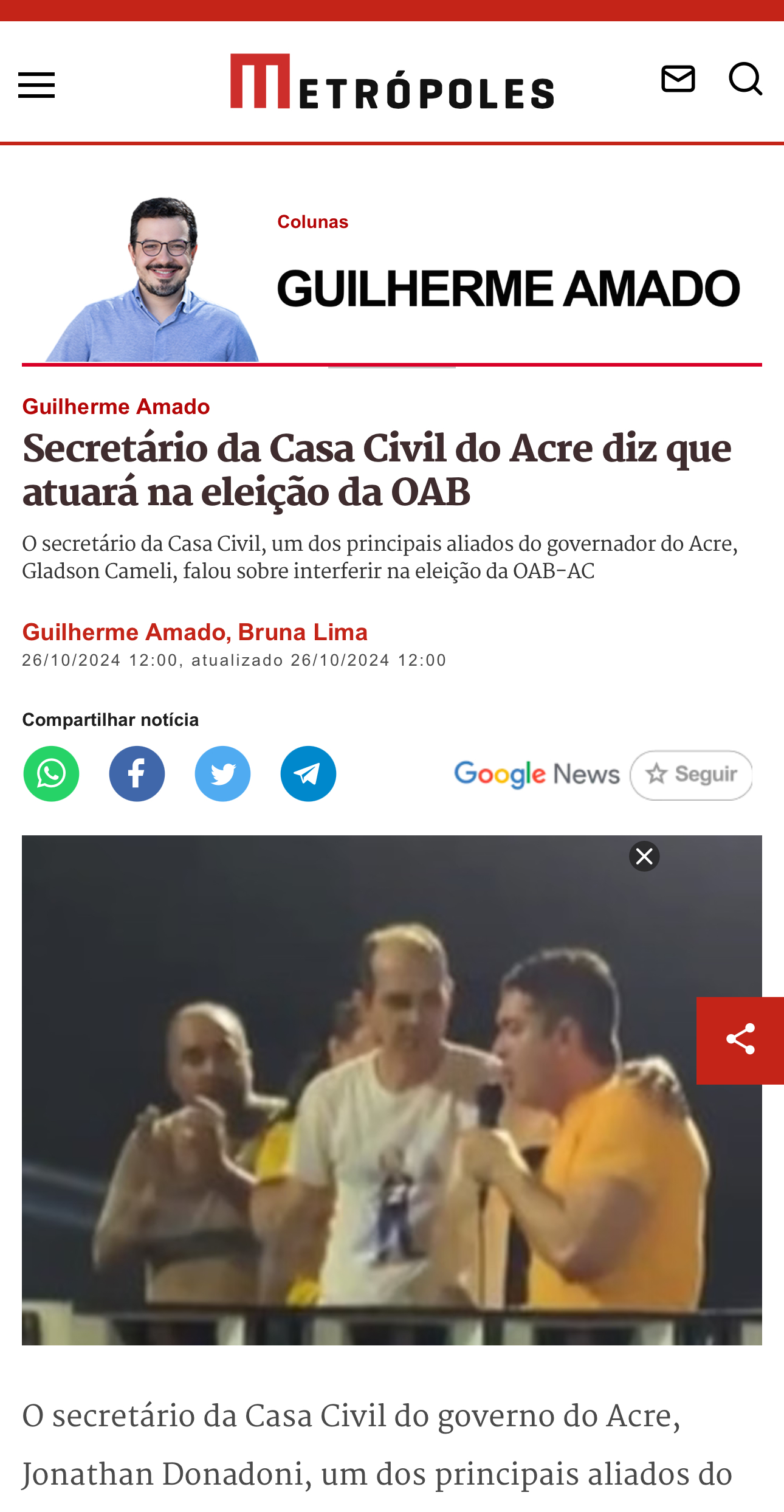 O secretário da Casa Civil do governo do Acre, Jonathan Donadoni, um dos principais aliados do governador Gladson Cameli, do PP, mostrou em um evento político a interferência do governo na eleição da seccional da Ordem dos Advogados do Brasil (OAB) no Acre.